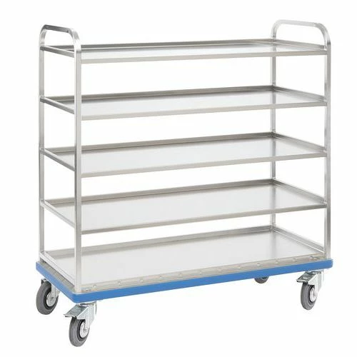 - Aluminium wagen met legborden, geschikt voor het transport van stapelbakken.