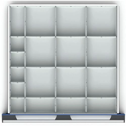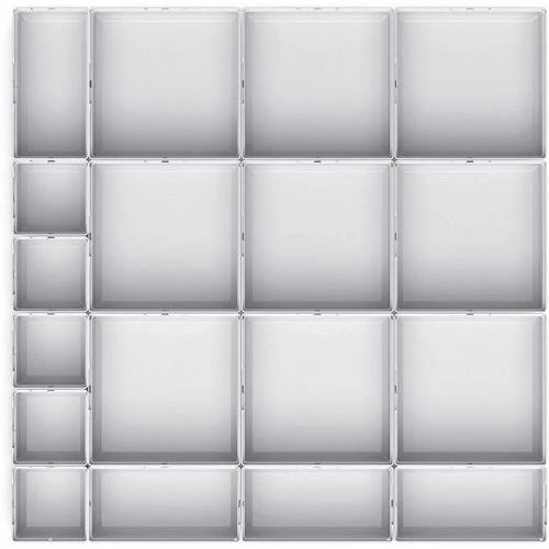 | Productnaam | Assortiment EKK-66100. 18 kleingoedbak, Breedte: 650 mm, Diepte: 650 mm, Hoogte: 75 mm, Type: Opbergbak |