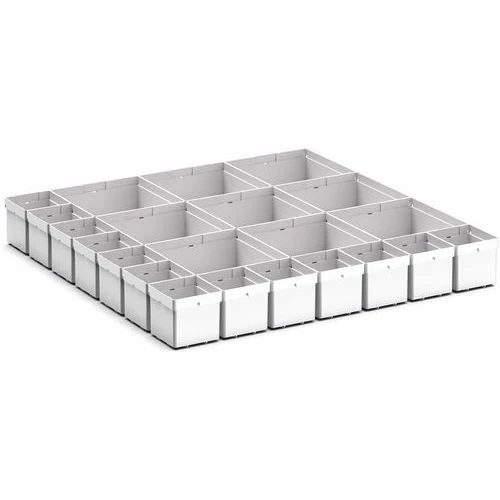 | Productnaam | Assortiment EKK-66100. 22 kleingoedbak, Breedte: 650 mm, Diepte: 650 mm, Hoogte: 75 mm, Type: Opbergbak |