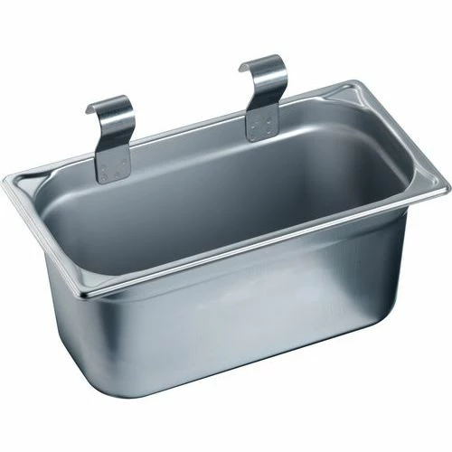- Bestekbak van roestvrij staal, diepgetrokken, met ophangvoorziening, aan de duwhandgreep te hangen