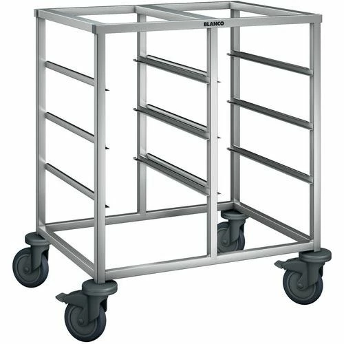 - Regaalwagen van roestvrij staal tweedelig, voor het inhangen van GN-inzetbakken