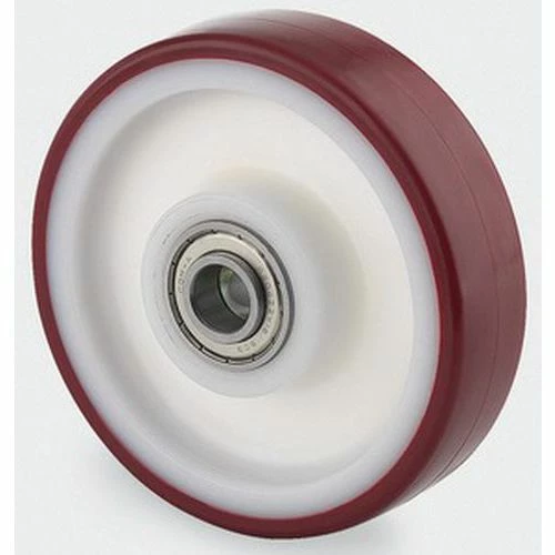 - Wielkern van polyamide met loopvlak van gespoten polyurethaan, wielnaaf op precisiekogellagers