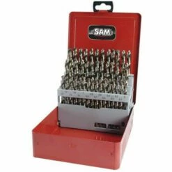 - Samenstelling van 32 geslepen en gegoten boren HSS voor klink- en tapwerk.