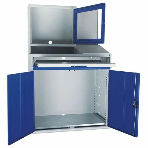 | Productnaam | Computermeubel, Max. belasting: 1000 kg, Max. belasting per legbord: 75 kg, Materiaal: Staal |