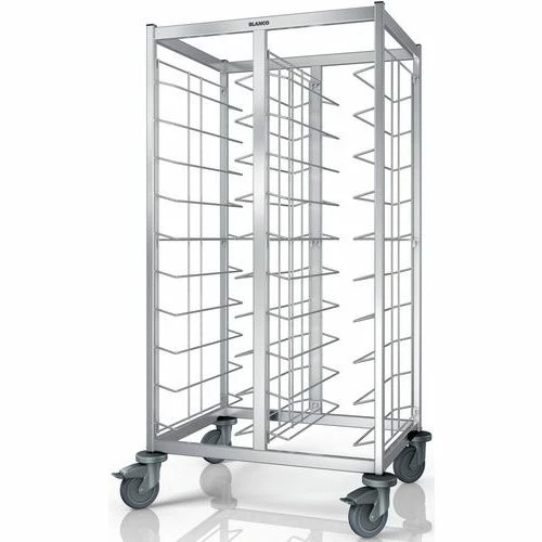 - Dienbladenafruimwagen van roestvrij staal met kunststof wielen