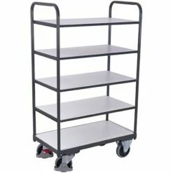 - Een assortiment transportwagens met geleiders voor gastronomie en banketbakkers.