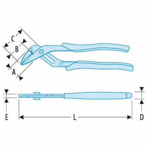 | Productnaam | Waterpomptangen grote capaciteit, Lengte: 250 mm, Type nr.: 180.CPESLS, Model: Waterpomptang |
