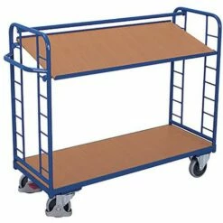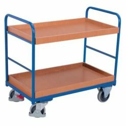Ergonomische Wagen Met 2 Houten Plateaus – Verticale Duwbeugel – Draagvermogen 250 kg