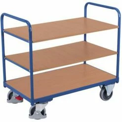 Ergonomische Wagen Met 3 Houten Plateaus – Verticale Duwbeugel – Draagvermogen 250 kg