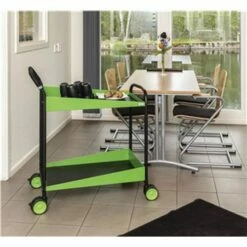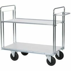 Verrijdbare Tafel Met Grijze Afwerking En Twee Handgrepen – 2 Plateaus – Draagvermogen 150 Kg