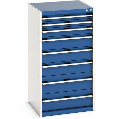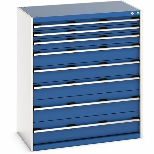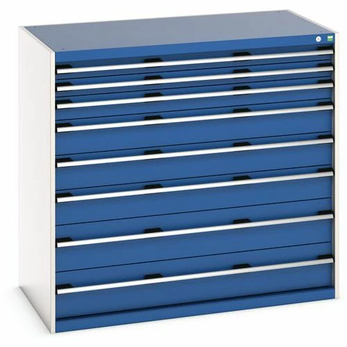- Ergonomische handgrepen voor van boven of van onderen vastpakken, standaard met blokkeersysteem van laden, individuele vergrendeling van de laden als optie verkrijgbaar.