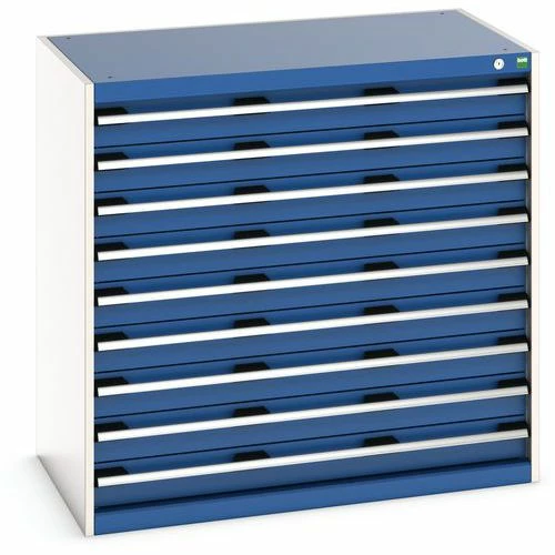 - Ergonomische handgrepen voor van boven of van onderen vastpakken, standaard met blokkeersysteem van laden, individuele vergrendeling van de laden als optie verkrijgbaar.