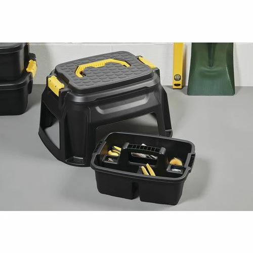 - Geïntegreerde opslagkist met vakken voor eenvoudig opbergen van gereedschap.