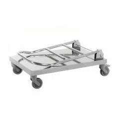 - Poedercoating met laminaatplank Hoogte tot platform 260 mm Grepen 25 mm stalen pijp, wordt geleverd met 1 greep 2 vaste en 2 draaiwielen massief rubber 200 x 50 mm Capaciteit 500 kg