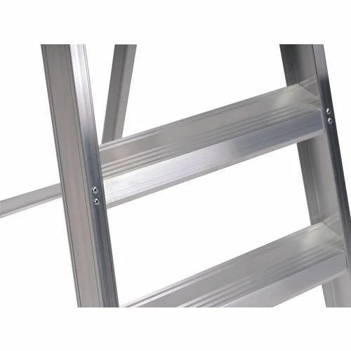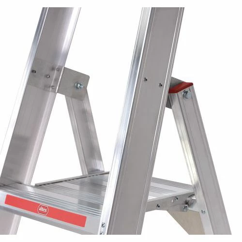 - Professionele enkelzijdige trapladder van extreem licht aluminium met treden met kruisprofiel.