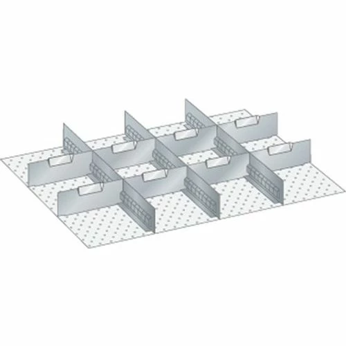 | Productnaam | Set-indelingsmateriaal 36x27E (bxdxh) 612x459x200 mm, Type: 3 wanden met uitsparingen en 8 tussenplaten |