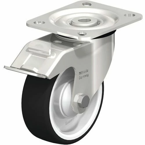 - Roestvaststalen zwenkwiel, met bevestigingsplaat, middelzware uitvoering, met rem ‘stop-fix’,