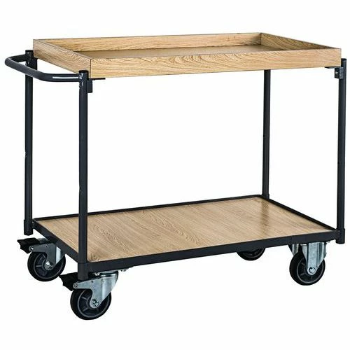 Tafelwagen Hout Met 2 Plateaus En Opstaande Rand – 250 Kg – Horizontale Stang – Manutan