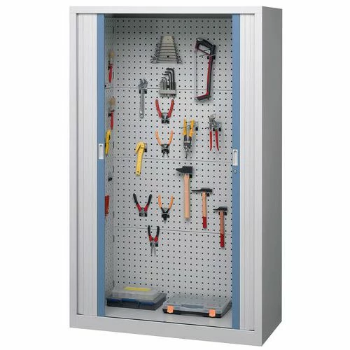 - Stevige materiaalkast in gelast plaatstaal met 4 legborden.