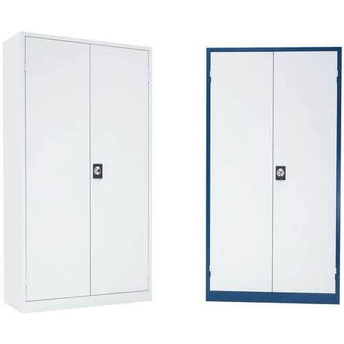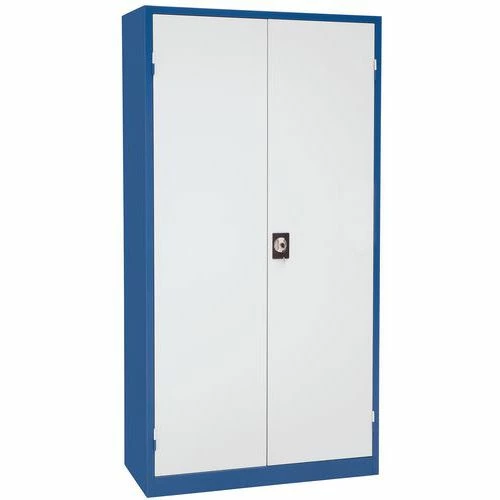 - Solide werkplaatskast voor materialen, van gelast staal met draaideuren.