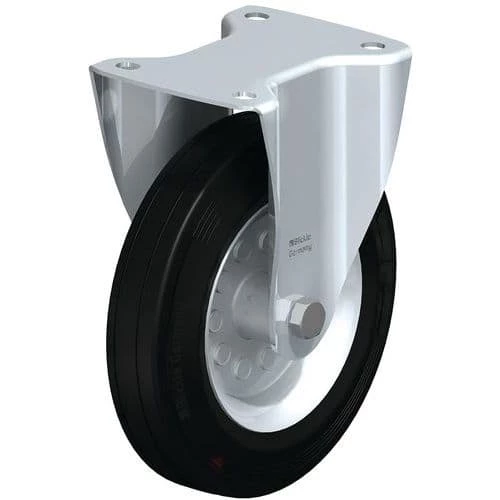 - Plaatstalen bokwiel, middelzware uitvoering, met bevestigingsplaat,