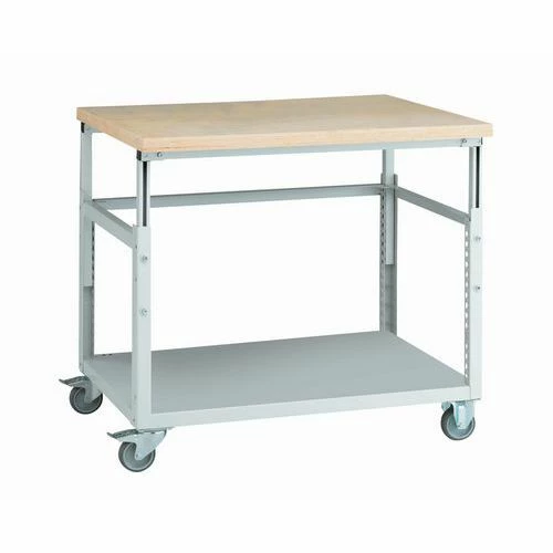 - Werkbank voorzien van 4 wielen, waarvan 2 geremde zwenkwielen.
