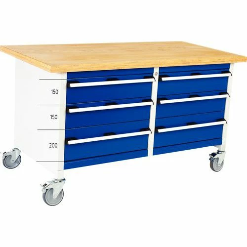 | Productnaam | Verrijdbare werkbank uit één stuk, met lades, Totale hoogte: 840 mm, Aantal laden: 6, Totale breedte: 1500 mm |