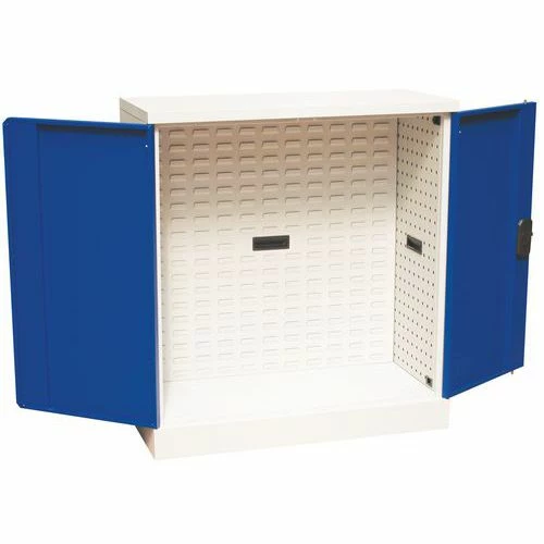 - Achterwand met bakken en zijwanden met haken voor gereedschap.