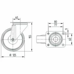 | Productnaam | Zwenkwiel Alpha met automatisch 180° fixeer inrichting_TENTE, Max. belasting: 250 kg, Ø: 125 mm |